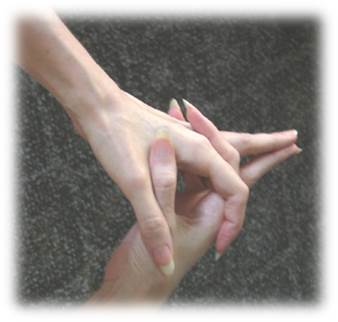 Τό μούντρα τῆς θέλησης. Ἑνώνουμε τήν κορυφή τοῦ ἀντίχειρα μέ τήν κορυφή τοῦ μέσου. Ἐδῶ ὁ μέσος ἀντιπροσωπεύει τόν πλανήτη Κρόνο πού ἔχει ὡς χαρακτηριστικό τήν ὑπευθυνότητα.(10)